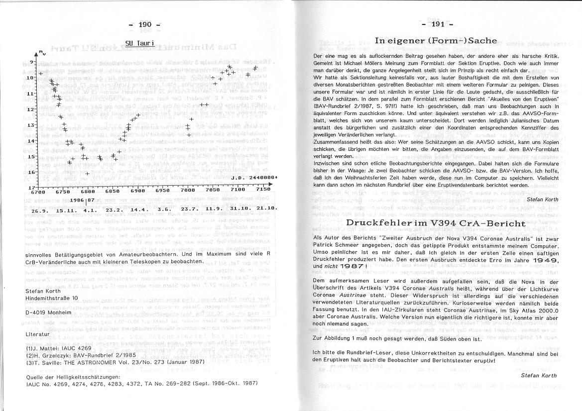 BAV Rundbrief 4/1987 Seite 190-191