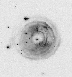 Des weiteren kann man unter der Annahme einer typischen Sternwindgeschwindigkeit von 15 km/s auf das Alter der Materiehülle schließen: Der zuerst sichtbare Bereich besteht demnach aus Materie, die vor 2500 Jahren vom Zentralstern ausgestoßen worden ist.